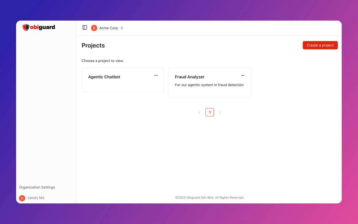 Each project in Obiguard includes a set of policy configurations. These policies determine the guardrail checks applied to every API request associated with the project’s API key. For example, a policy might:- Inspect user inputs for prompt attacks or sensitive information (PII).