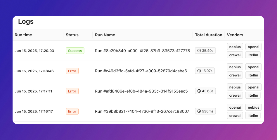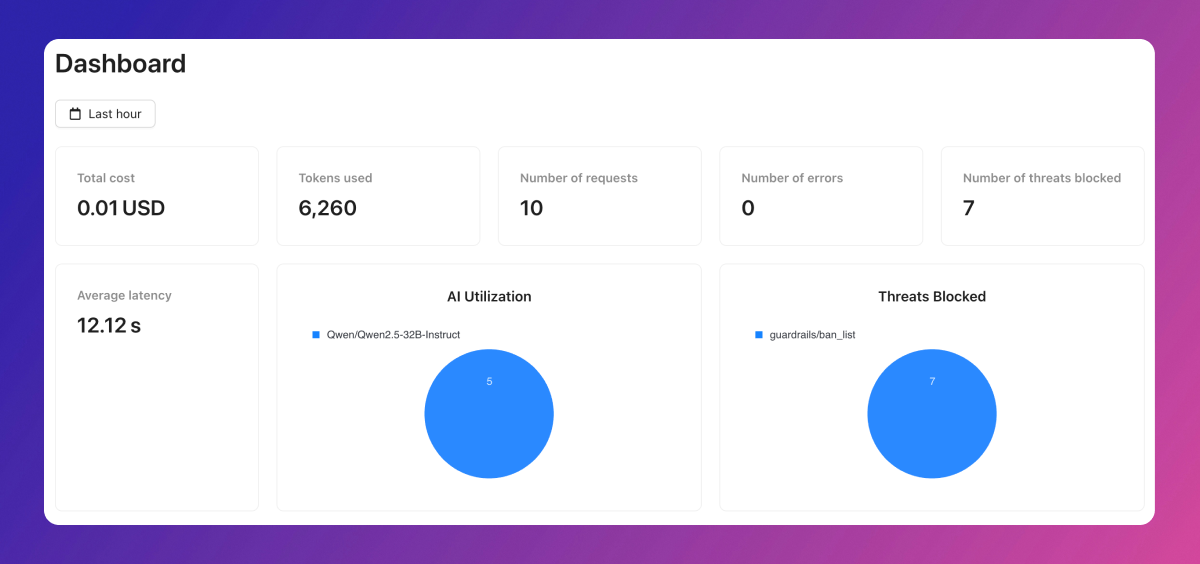 The dashboard delivers detailed insights into users, errors, cache activity, feedback, and aggregates data by metadata.Overview